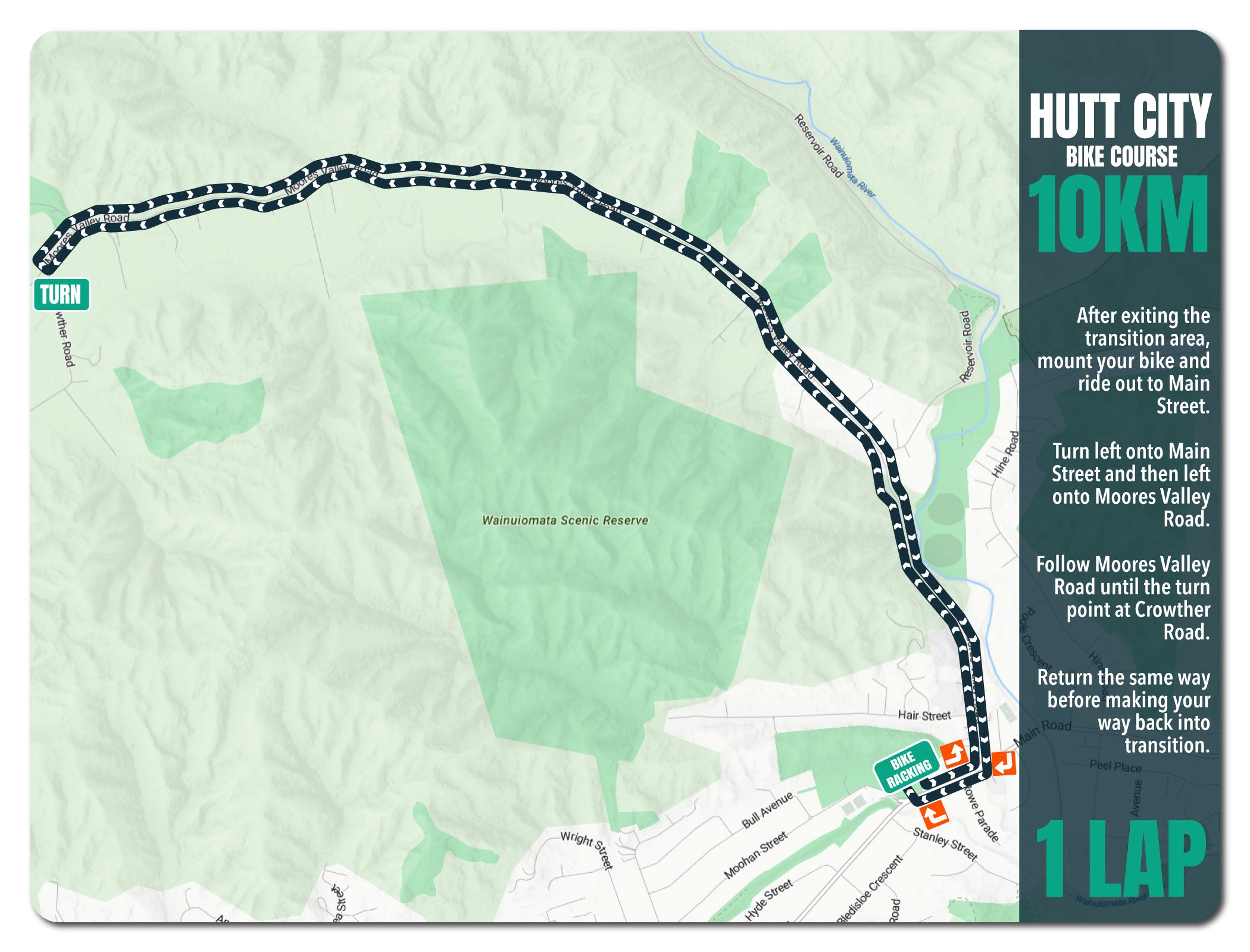 - Cycle: 10km (flat and scenic course, suitable for road or hybrid bikes)