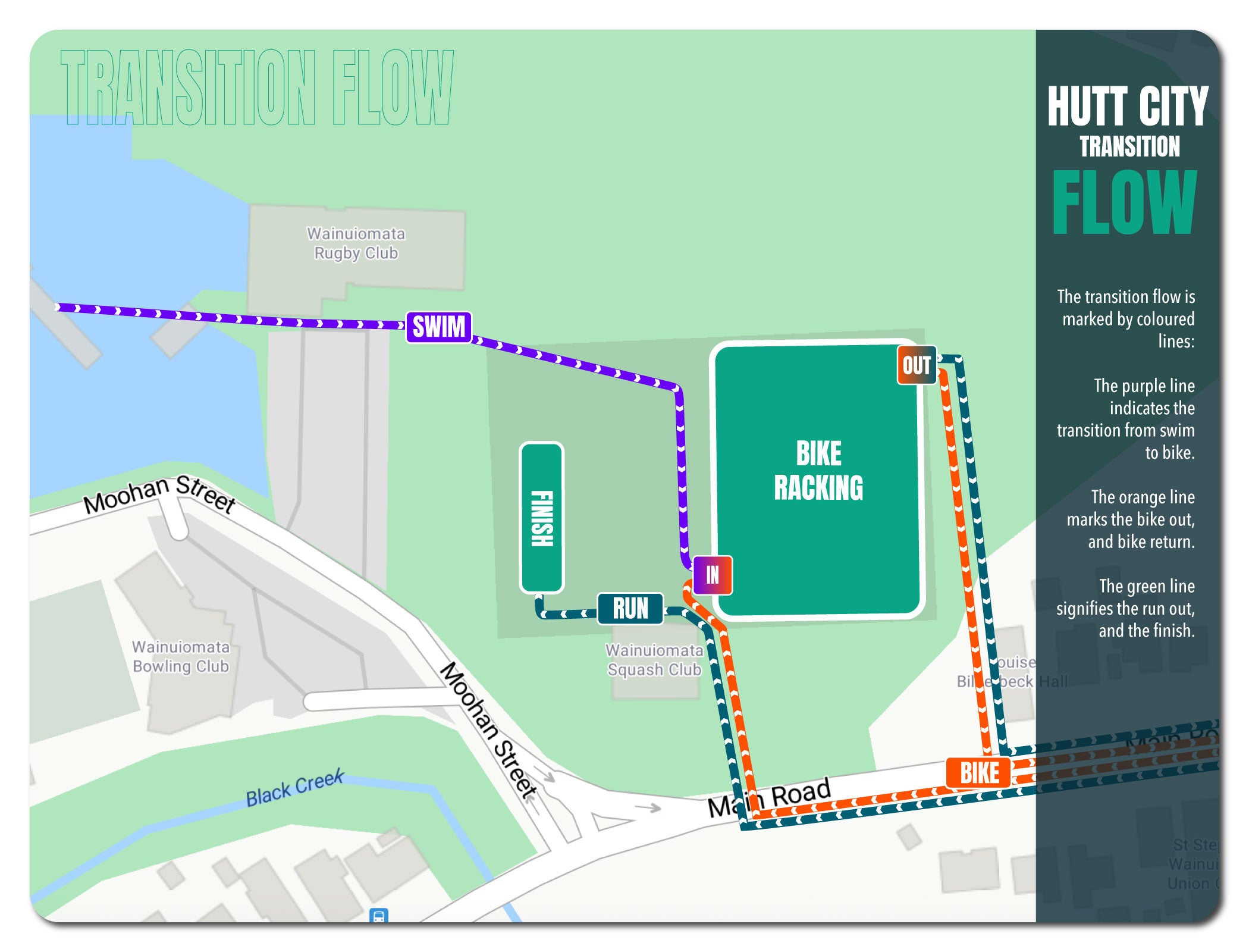 - Experience the flow from swim to bike and bike to run/walk